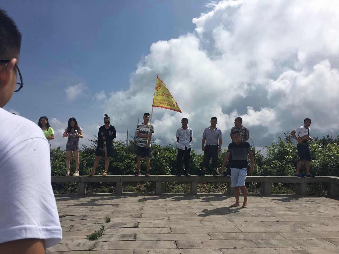 藍天白云、青山綠水、花草樹木、匯利興人、匯利興旗、匯利興精神......融合如此美麗。2016年8月6日,匯利興與大自然親密接觸、陶冶情操自駕游活動正式起程。我司4輛戰車出動,載著“戰士們”一睹喀斯客獨特地貌險麗,疾馳在蜿蜒屈曲的公路上。登上萬佛頂最高峰,戰士們心曠神怡,不由自主地唱起那首匯利興之歌。戰旗在山頂上飄揚,簡直就是藍天白云最美點綴。