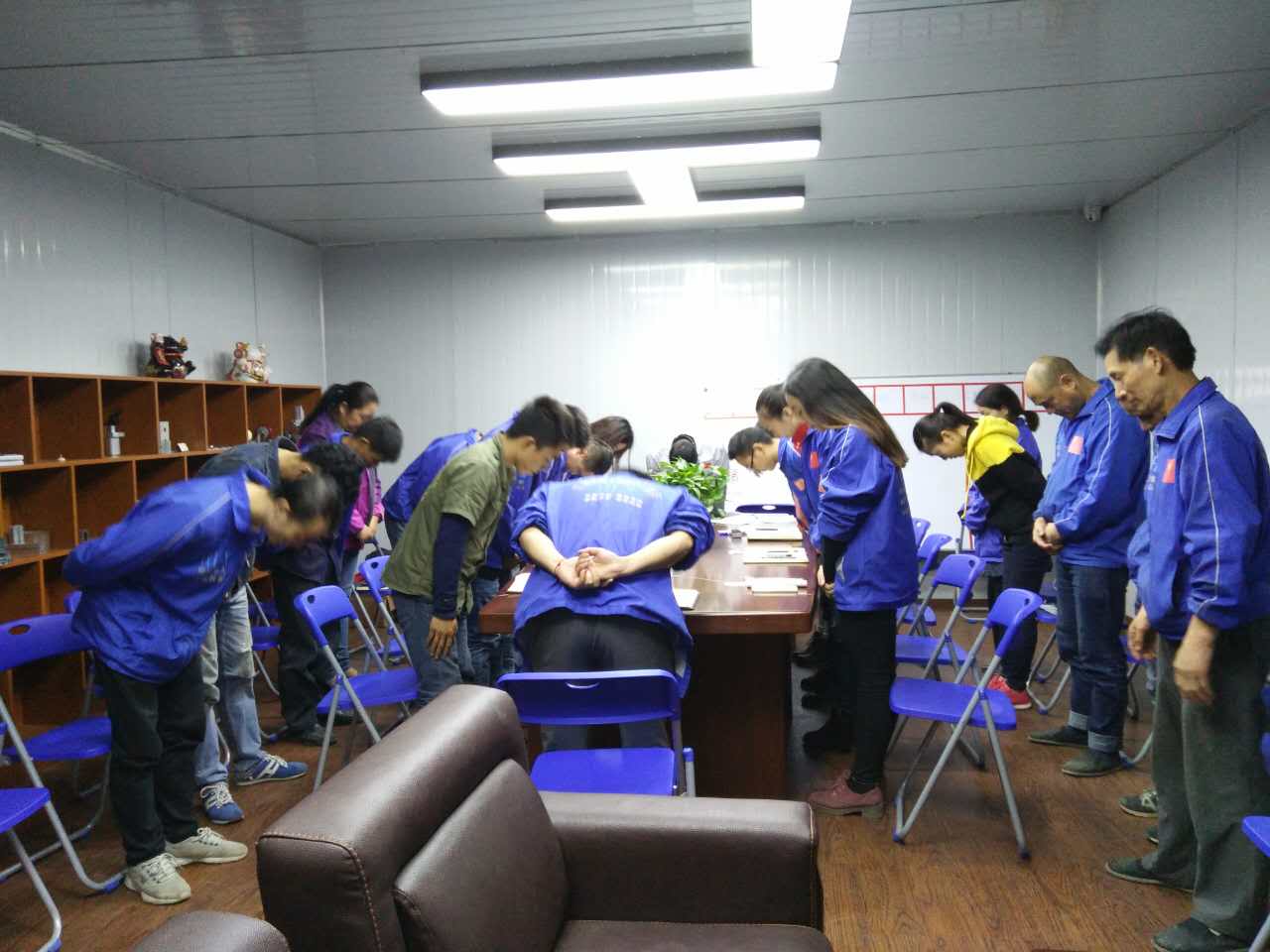 會議召開前夕,全體員工向企業三道(商道、孝道、人道)行三鞠躬