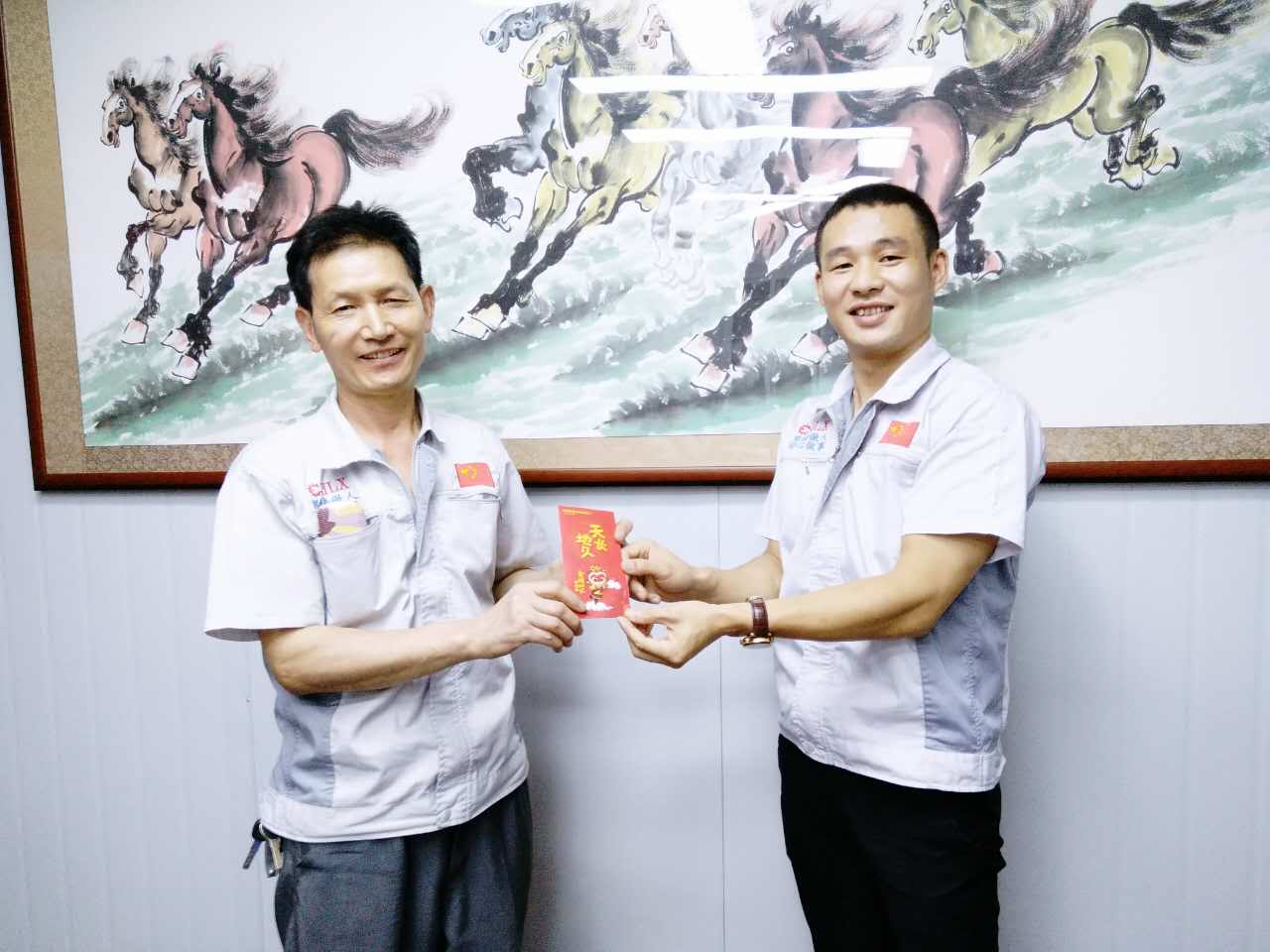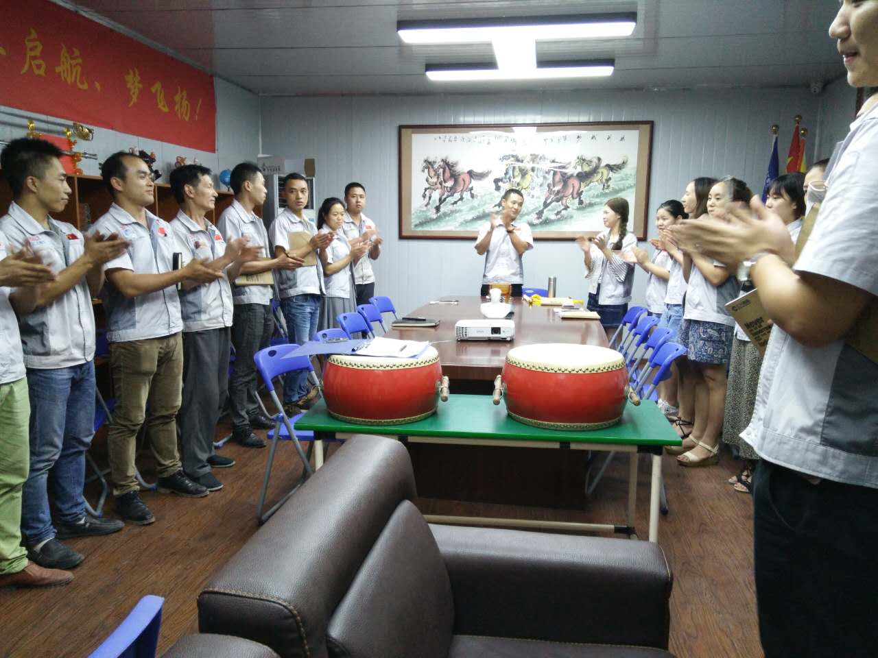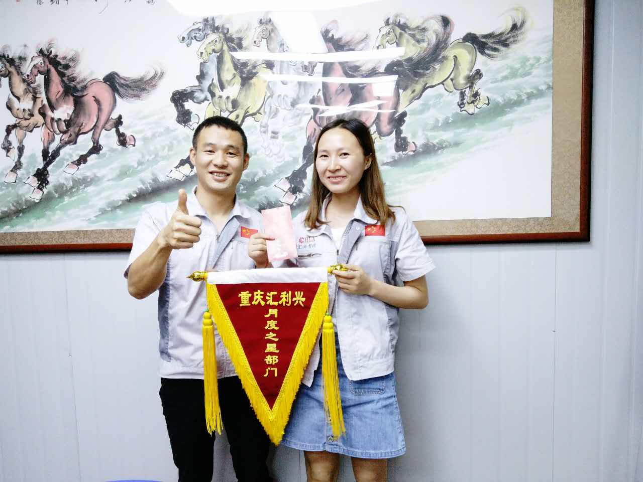 匯利興家人自我價值枰稱估量圖示 會議召開前,全體人員對企業三道“人道、孝道、商道”行三鞠躬,隨后以“士氣擊鼓”儀式正式進入會議主題。 全體員工向企業三道行三鞠躬 會議士氣擊鼓,士氣比武器更重要 會上,首先胡總經理對我司上半年度業績增長度做了相應的講解;其次對我司發展現狀做了相應的分析,并表示公司相關制度會隨著規模壯大不斷加之嚴格化;隨即提到公司人才倍增計劃、匯利興品牌影響力度及公司員工福利事宜,并表示在前進及壯大的基礎上必經“改革”之路,推陳出新、不斷創新。隨后,各部門主管依次對上季度做簡短述職,檢討不足分享經驗;最后會議以每月最佳部門獎及月度之星的頒選而落下帷幕。 每月最佳部門獎與月度之星,是一份激勵與鼓舞,是一份責任與擔當,是一份愛與認可;正是這份公司的激勵、自我的責任、同事的愛,使匯利興家人更加團結與奉獻,默默付出與努力,讓這個家越來越壯大。此次最佳部門獎為“客服部”,月度之星“周長發”家人,在此感謝他們的付出與努力,讓我們用最堅韌的力量一起奔向心中的藍天。 胡總經理(圖左)與月度部門“客服部”代表人蒲經理(圖右)合影 胡總經理(圖右)與月度之星周長發(圖左)家人合影