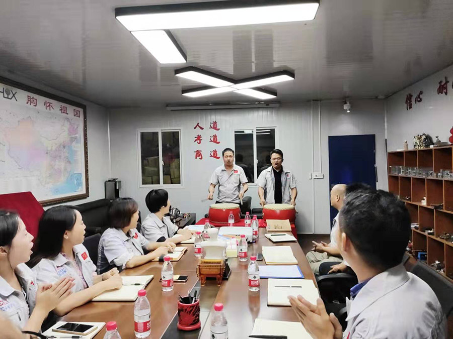 士氣比武器更重要。會議前,兩位核心高管擊士氣鼓,現場鼓聲震天,激動人心。