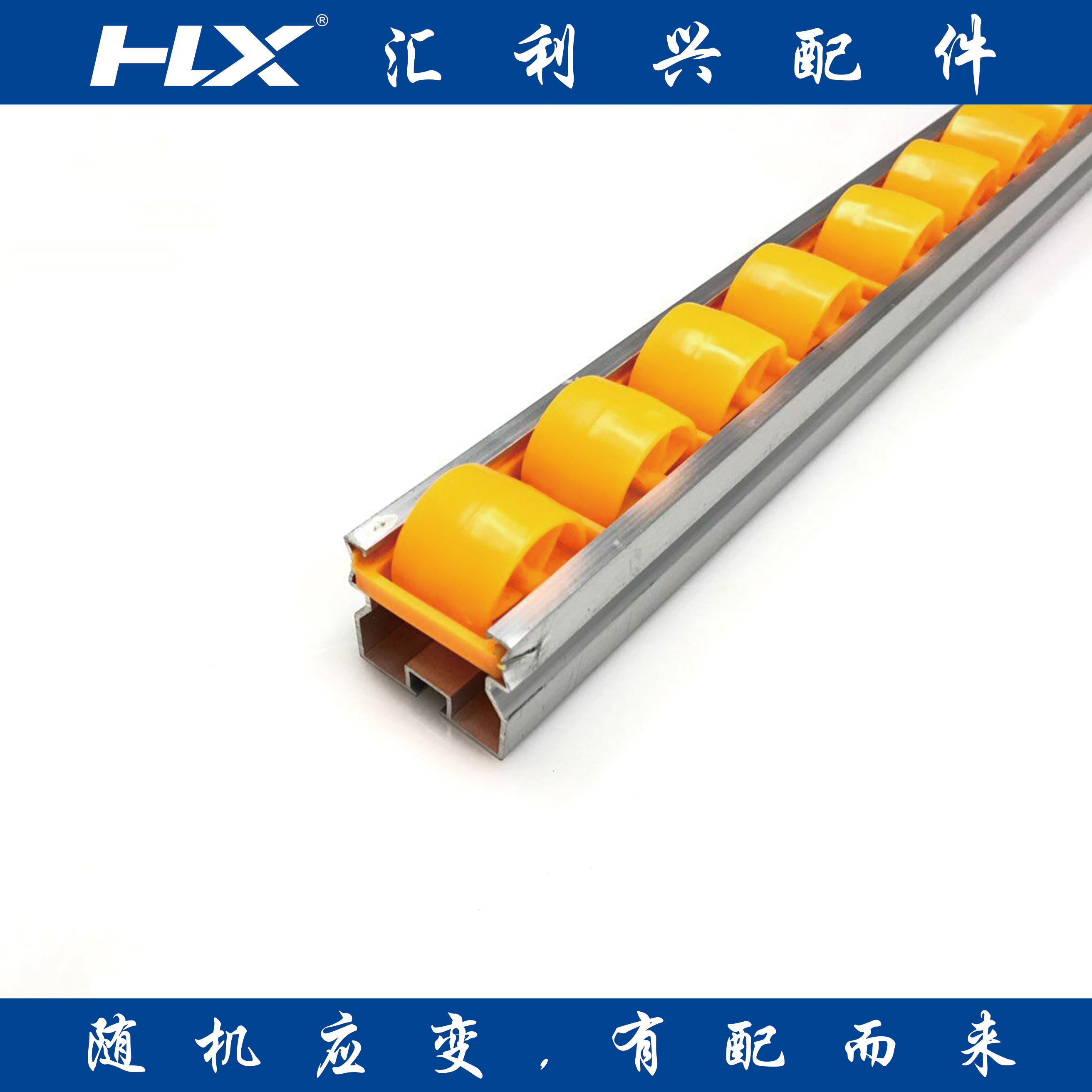 流利條系列:HLX-4A-2鋁合金流利條匯利興產(chǎn)品這流水線配件流利條系列,流利條主要用于輸送、倉儲(chǔ)系統(tǒng)配套產(chǎn)品,可用作滑軌、護(hù)欄、導(dǎo)向裝置、滾動(dòng)性能好、成本低。滾輪采用高品質(zhì)的熱塑性塑料制成,具有摩擦系數(shù)小、抗沖擊、壽命長(zhǎng)、耐酸堿性、耐潮溫等優(yōu)點(diǎn)。當(dāng)貨物重量超過額定的負(fù)荷時(shí),可在一個(gè)通道安裝多根流利條。安裝傾斜度取決于重量以及流利架的深度,一般3O~6O(5%~9%)。通常在深度方向上每隔600mm~800mm安裝一根支撐梁以增強(qiáng)流利條的剛度。滾輪顏色可選:黃色,藍(lán)色,白色,黑色等其他顏色。輪距常用為:35mm,45mm 并可以根據(jù)實(shí)際使用情況定尺生產(chǎn)。我司專業(yè)生產(chǎn)鋁全金流利條,載重流利條,板金流利條,鋁全金流利條接頭,板金流利條接頭等流水線配件。 |
