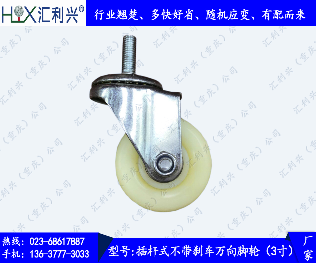 產(chǎn)品名稱:插桿式不帶剎車萬向腳輪(3寸) 產(chǎn)品型號:插桿式不帶剎車萬向腳輪(3寸)